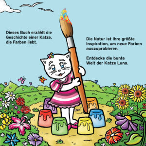 Die bunte Katze Luna       Erklär- und Malbuch für einfache Farblehre anhand der Geschichte der „bunten Katze Luna“.Titelbild "Die bunte Katze Luna"Roberta Henke Carneiro (Konzept/Text) ; Rúbens Carneiro (Grafik) ; ISBN 978-3-9825644-3-2