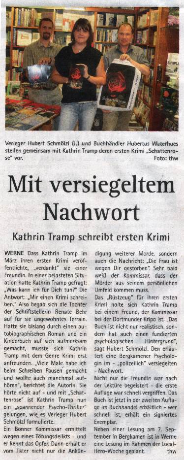 17.07.2010, WestfälischerAnzeiger – Werne, Ausgabe von „Schattenrose“, Kathrin Tramp