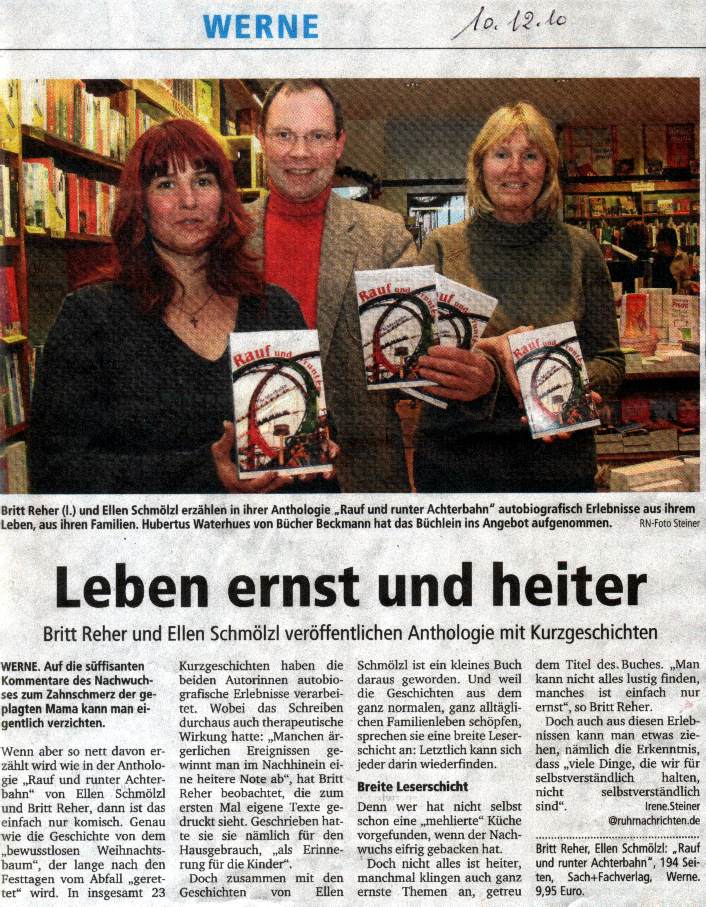 10.12.2010, RuhrNachrichten Werne, Ausgabe von „Rauf und runter Achterbahn“, Ellen Schmölzl/Britt Reher