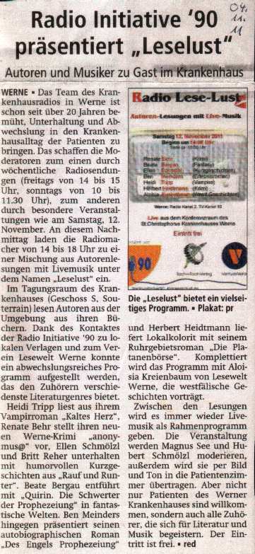 24.11.2007, RuhrNachrichten-Werne, Ausgabe von „Schere-Tupfer-Mikrofon“, Krankenhausfunk Werne