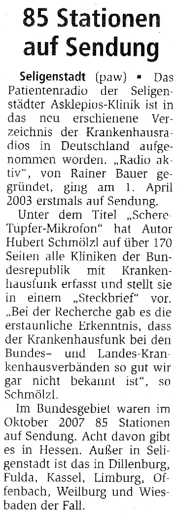 24.11.2007, WestfälischerAnzeiger-Werne, Ausgabe von „Schere-Tupfer-Mikrofon“, Krankenhausfunk Werne