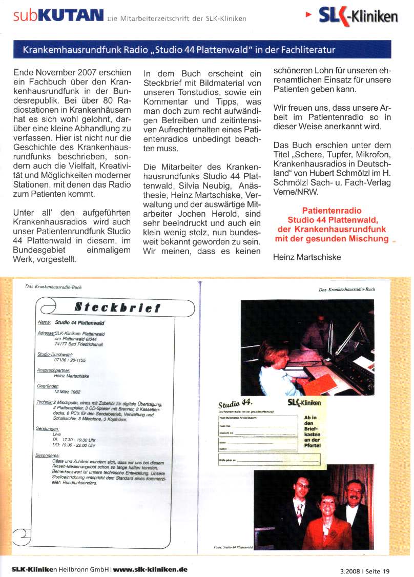 Sept. 2008, SLK-Kliniken-Magazin, Ausgabe von „Schere-Tupfer-Mikrofon“, Krankenhausfunk Bad Friedrichshall